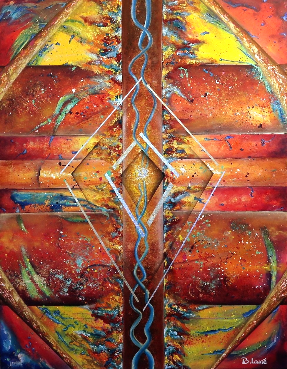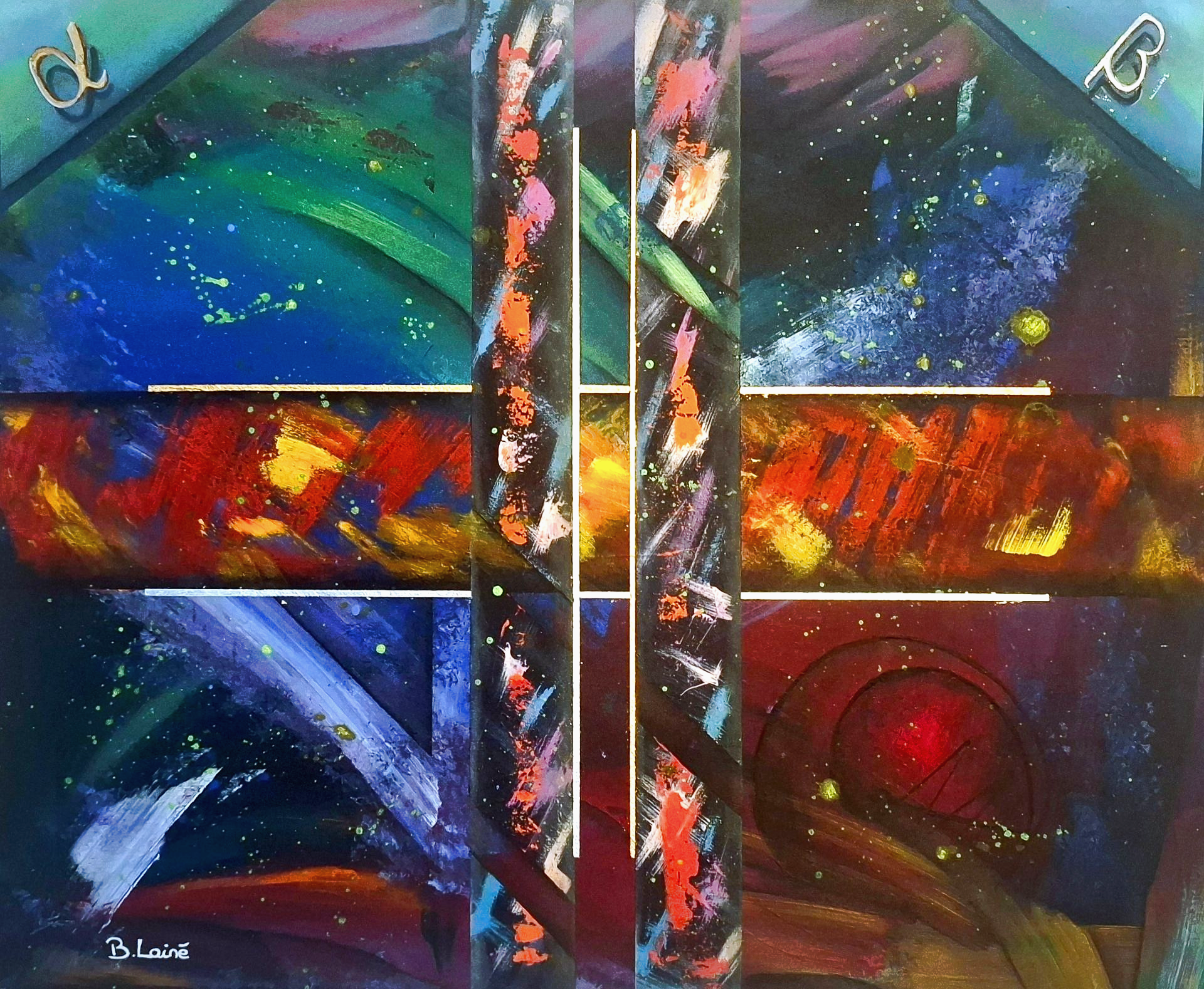 Acrylique sur toile, feuilles dorées et argentées