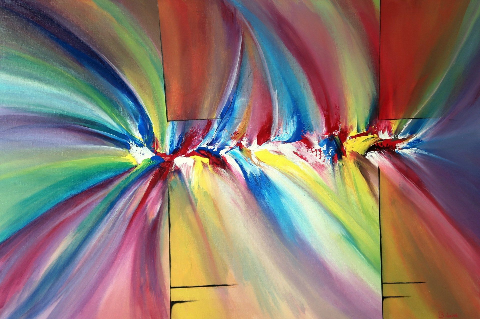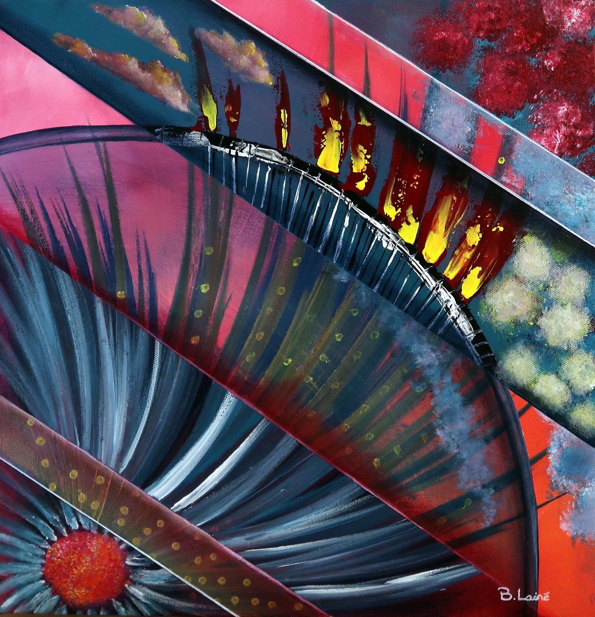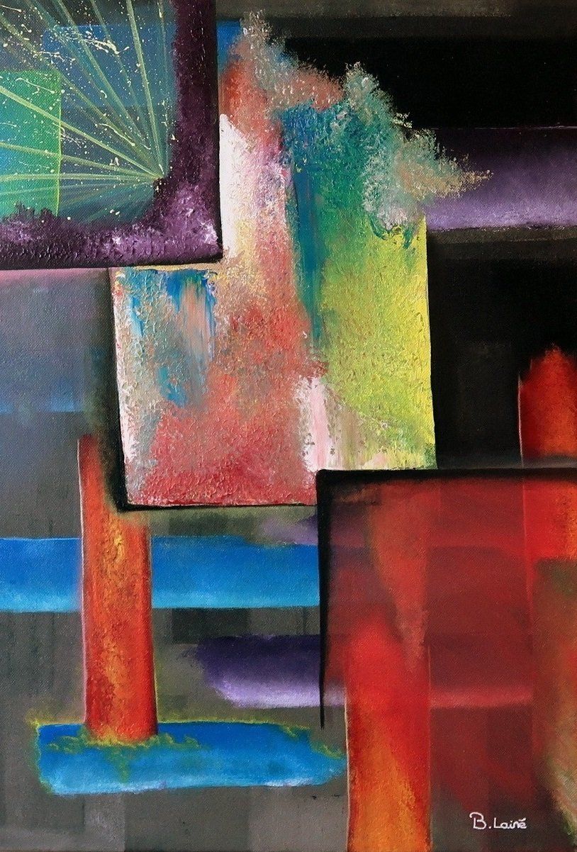 Ces peintures abstraites explorent la couleur, le mouvement et l'harmonie.